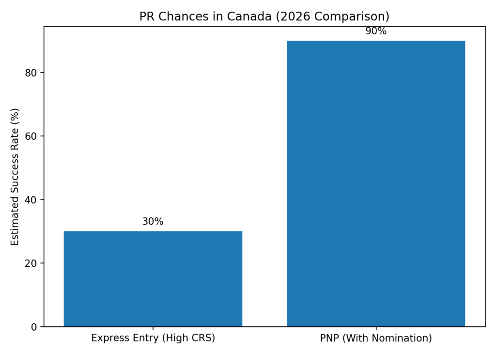 Comparison of PR success chances in Canada in 2026 showing why PNP is becoming the preferred pathway.